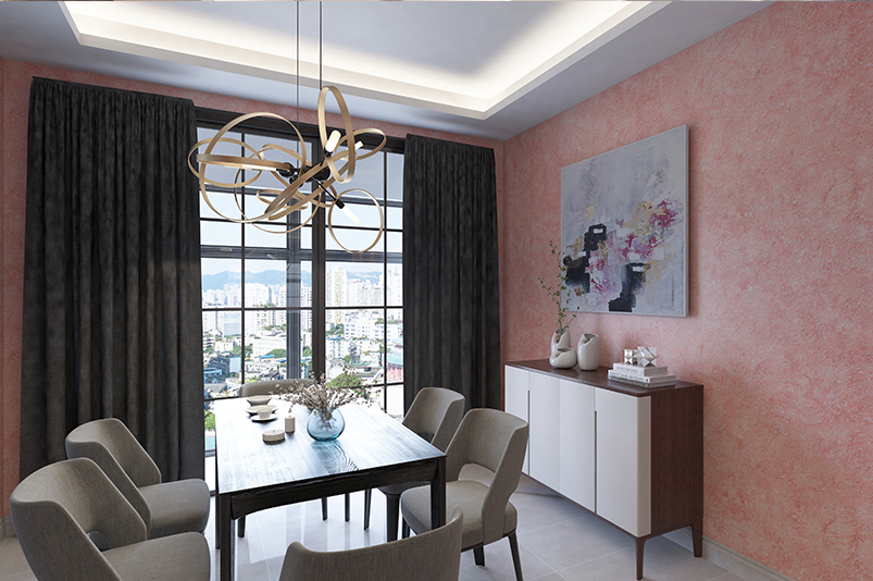 斑駁的點(diǎn)綴、隨意灑脫的施工、顏色上的多種配合、將不同的人代入同樣的浪漫環(huán)境之中,舒適、恬靜。